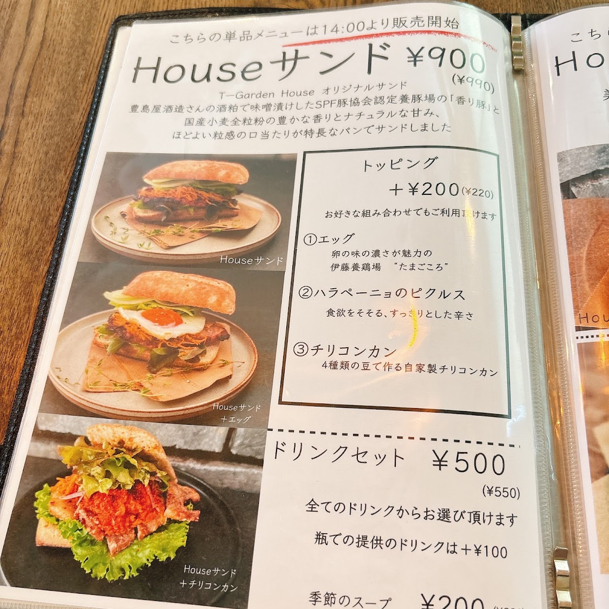 Welcome to T-Garden House, a charming café nestled in Higashimurayama, Tokyo. This delightful spot boasts a menu that emphasizes high-quality ingredients and seasonal flavors. Guests can indulge in the House Sandwich, which features expertly marinated "Fragrant Pork" paired with a flavorful 青唐辛子味噌 and a popular carrot rapé, all encased in aromatic whole wheat bread. For those seeking variety, the Lunch Plate showcases locally sourced vegetables alongside the same premium pork, ensuring each bite offers a taste of Japan’s rich agricultural heritage.